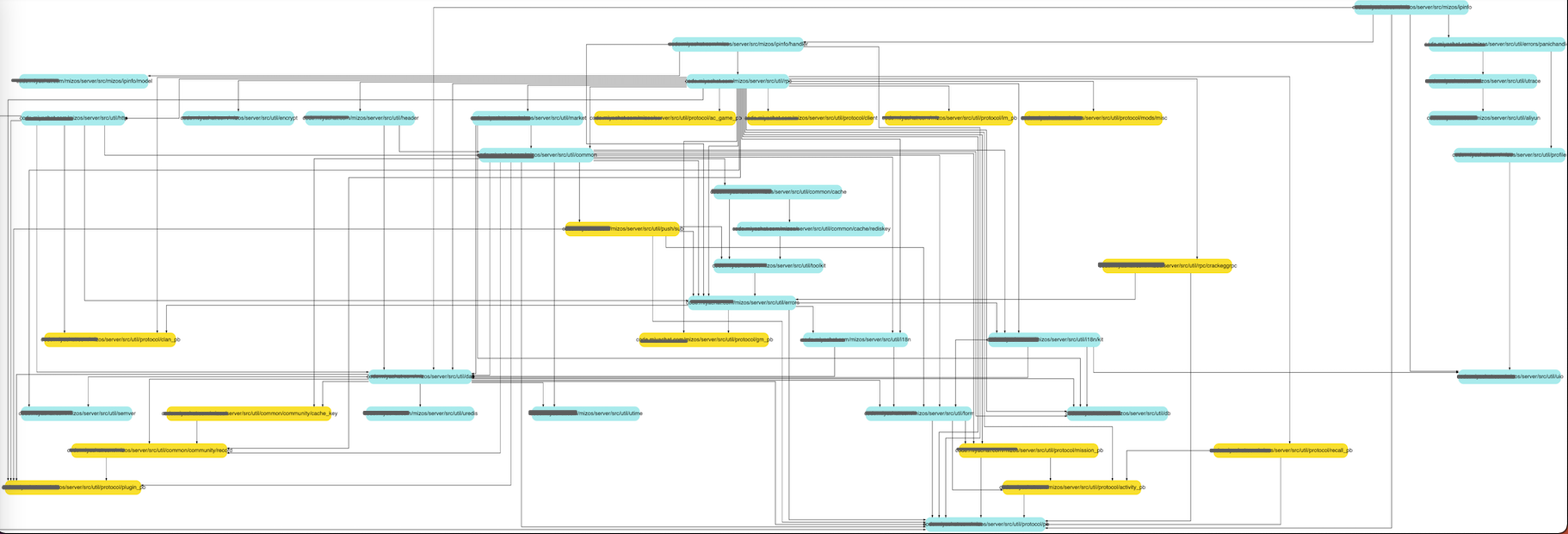 go build会编译所有的依赖(包括自身项目其他包的代码、第三方依赖包的代码),我找了1个导入第三方依赖包最少的微服务,查看了第三方依赖包的代码,没有发现代码量特别巨大。那么有可能问题是出现在自身项目的代码里,于是我借助工具生成了一份可视化的依赖关系图,协助排查问题。