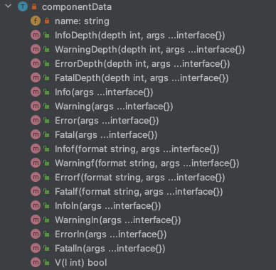 首先,可以从componentData结构体实现的方法看出:它同样了LoggerV2接口,如下图: