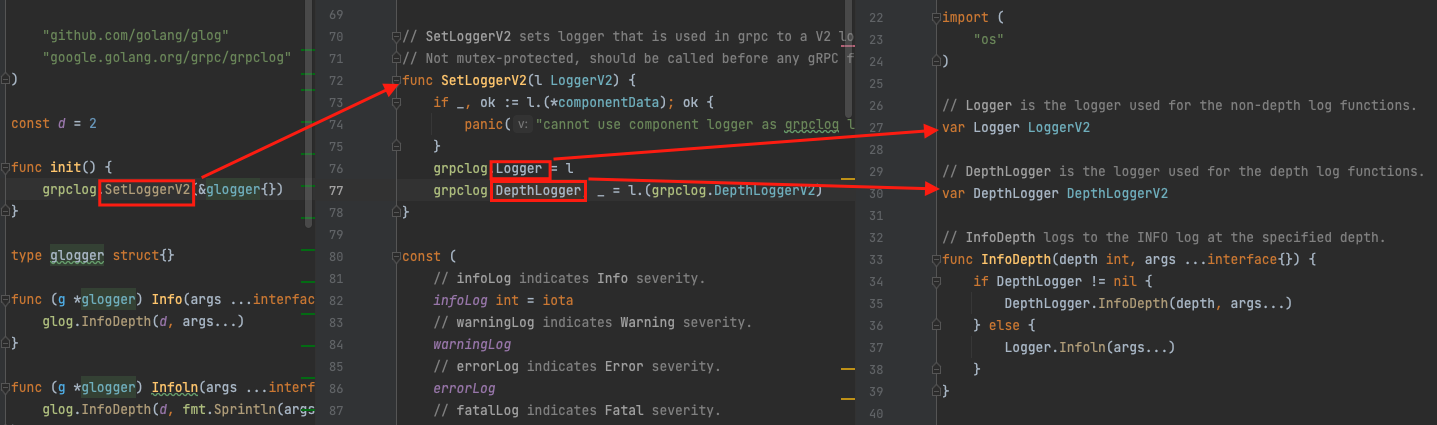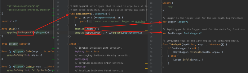 - glogger结构体是如何被初始化?使其方法为grpc-go打印日志;