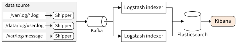 通过log包将日志记录在本地文件中(*.log文件),再通过Shipper收集到Kafka中。Shipper可以根据需要灵活选择,常见的Shipper有Logstash Shipper、Flume、Fluentd、Filebeat。其中Filebeat和Logstash Shipper用得最多。Shipper没有直接将日志投递到Logstash indexer,或者Elasticsearch,是因为Kafka能够支持更大的吞吐量,起到削峰填谷的作用。