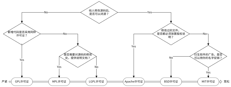 那具体如何选择适合自己的开源协议呢?你可以参考乌克兰程序员 Paul Bagwell 画的这张图: