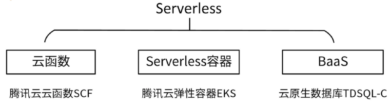 这3种技术形态,各大公用云厂商都早已有相应的产品,其中比较优秀的产品是腾讯云推出的Serverless产品,SCF、EKS和TDSQL-C。下面我分别介绍下。