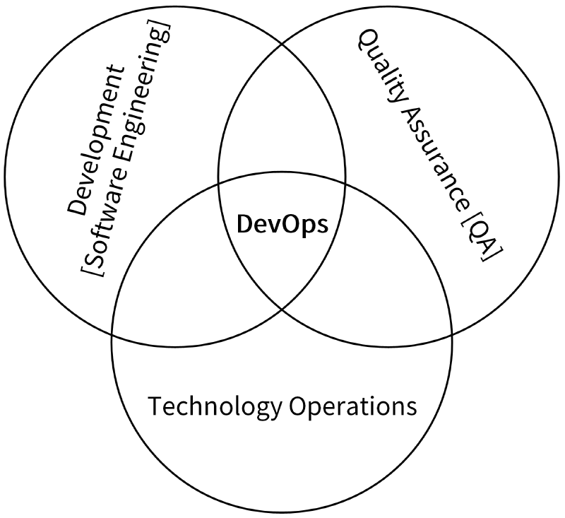 DevOps(Development和Operations的组合)是一组过程、方法与系统的统称,用于促进开发(应用程序/软件工程)、技术运营和质量保障(QA)部门之间的沟通、协作与整合。这3个部门的相互协作,可以提高软件质量、快速发布软件。如下图所示: