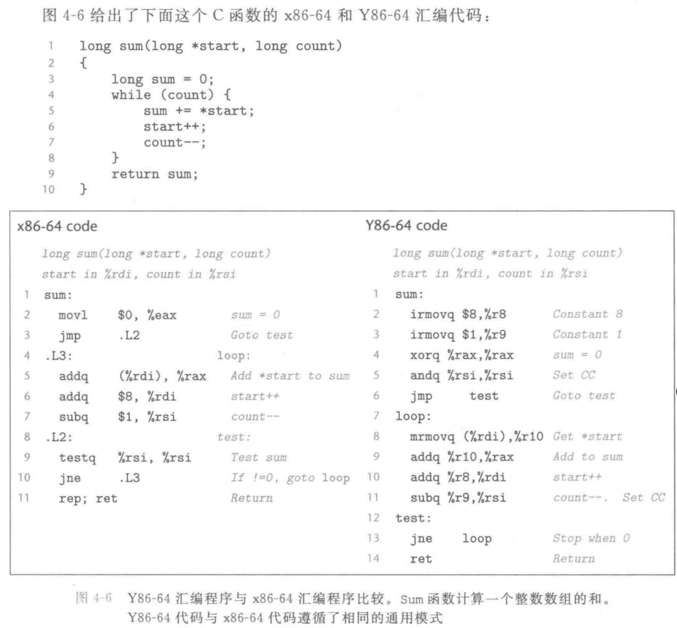 如果我们用Y86-64的编译器生成汇编代码,那么汇编代码里的指令集就会是上图那些。例如由GCC编译器产生的汇编代码,汇编代码里的指令就属于x86-64指令集。
